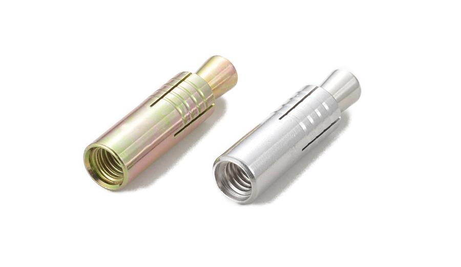 本体に挿入された芯棒をハンマーで打込むことにより本体先端が拡張し、コンクリート孔壁に固着する製品です。